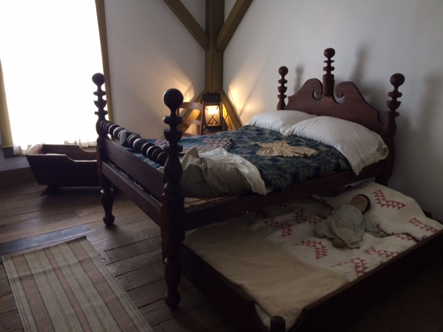 The next room we see is Joseph and Emma’s bedroom, where Joseph Smith III was born and where Julia Murdock slept in the trundle bed (Pix #14).